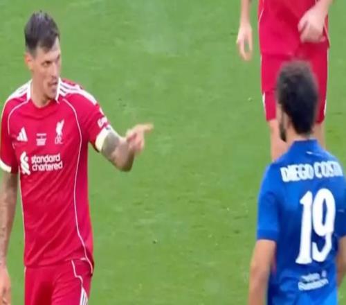 雷速体育10月11报道 在今晚切尔西与利物浦的传奇慈善赛中意外地出现了火爆的一幕:代表切尔西出战的迭戈·科斯塔在与利物浦后卫斯科特尔的对抗中发生冲突,随后更是以一次故意犯规的动作进行报复。