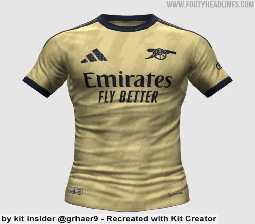 阿森纳2627赛季二客球衣谍照曝光:浅黄色为主,闪电暗纹设计
