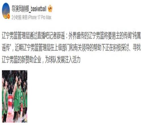 辟谣!工作人员明确否认“辽篮易主”正寻找新赞助企业