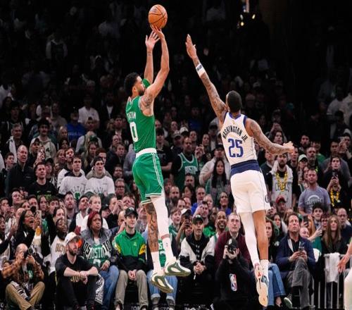 中场休息回来,凯尔特人连续两节单节得分30+,独行侠一波8-2攻势反超,凯尔特人连得8分夺回领先,其中塔图姆再中三分。凯尔特人逐步扩大74-66领先优势,独行侠连追6分,谢尔曼抛射命中,克莱三分追分。凯尔特人一波8-0攻势扩大优势,凯尔特人随后继续逐步扩大两位数领先优势,凯尔特人单节32-27净胜5分,三节结束凯尔特人扩大90-80领先独行侠。前三节比赛,凯尔特人三分39中14,布朗22+6+5与塔图姆12+9+6,引领4人得分上双;独行侠三分27中10,克莱16分与弗拉格12+5+5,引领4人得分上双。