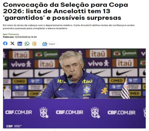 还有3个月,2026年世界杯就将开打。3月13日,巴西媒体estado透露,巴西国家队主帅安切洛蒂,将18名球员列入世界杯参赛名单中。还有8个名额,安切洛蒂将继续考察。内马尔不在“准入名单”之列,世界杯前景并不明朗。